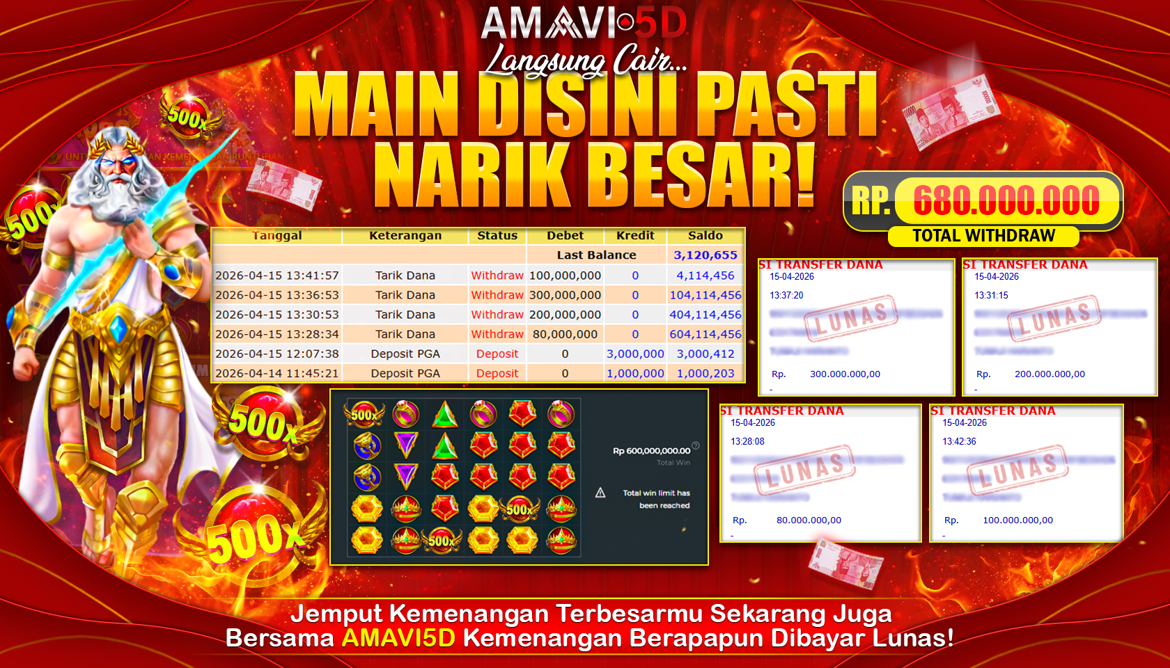 Sebagai situs online terbaik, AMAVI 5D memiliki sistem transaksi cepat menggunakan Qris. Hanya membutuhkan waktu beberapa detik saja, saldo sudah otomatis masuk ke dalam akun pemain. Didukung dengan livechat 24 jam nonstop yang ramah dan responsive, siap untuk melayani member kapan saja jika mengalami kendala.